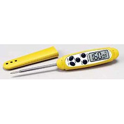 Studio : Taylor Publisher : Taylor Product Description Dishwasher safe. Temperature range: -40°F to 450°F. Memory feature saves highest recorded temperature for dishwasher readings. Tapered end for less invasive probe and more precise reading. 23?4" stem. Field calibrateable. On/Off switch with auto shutoff after 10 minutes of static temperature. Hold feature. Select °F or °C. Battery and pocket sheath included. NSF listed. 0