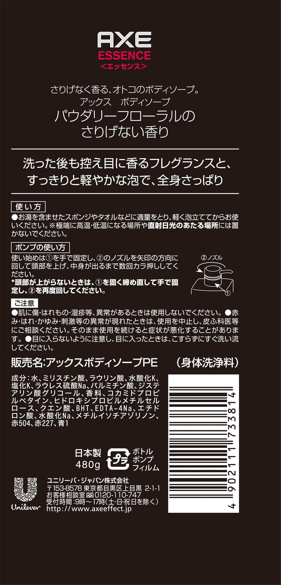 Water, myristic acid, lauric acid, hydroxide K, K chloride, Na laureth sulfate, palmitic acid, glycol distearate, fragrance, cocamidopropyl betaine, hydroxypropylmethyl cellulose, citric acid, BHT, EDTA-4Na, etidronic acid, water