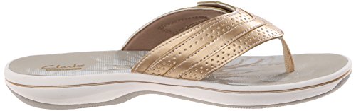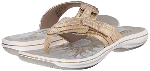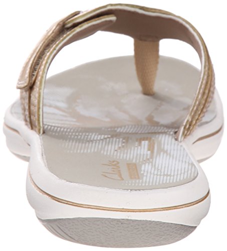 Studio : Clarks Publisher : Clarks Binding : Apparel Product Description The brinkley keely is an exclusive flip-flop thong from the Clarks collection. It exemplifies truly carefree summer dressing with it's fun colors and perfed upper. Offered in synthetic uppers with an adjustable hook-and-loop closure, synthetic linings, printed eva footbed, and rubber outsole. This women's flip flop brings a beachy vibe to everyday wear. 0