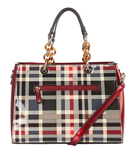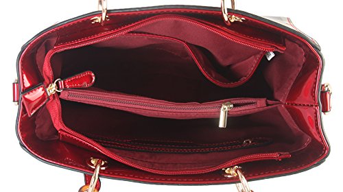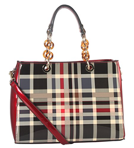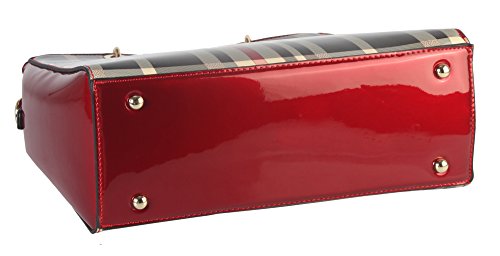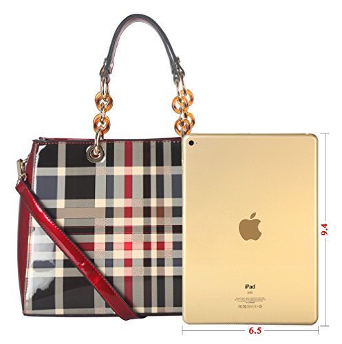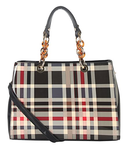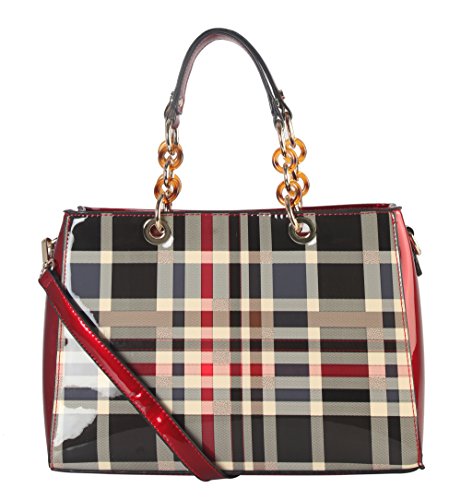 -. Brand : Diophy -. Color : Black -. Department : womens -. Feature : This handbag comes in 3 different colors: Beige, Black, and Red. / High Quality Shiny Patent PU Leather Plaid Pattern Tote with Faux Agate Ring Décor with Reomvable Strap. / High Quality Fabric Lined Interior with Multiple Interior Pockets. 2 Compartments with 2 Zippered Pockets and 2 Open Pockets Inside. 1 Zippered Pocket Outside in the Back. / Approximate Size info: Length 12.5" x Width 5" x Height 9" Material: PU Faux Leather. Top Zipper Closure. / Color showing in other color is to show the different variation angles of the handbag. The actual bag ship, will be the one your purchased. -. Label : Diophy -. Manufacturer : Diophy -. Model : GZ-6157 Parent -. PackageQuantity : 1 -. ProductGroup : Shoes -. ProductTypeName : HANDBAG -. Publisher : Diophy -. Size : Large -. Studio : Diophy -. Title : Diophy Shiny Patent PU Leather Plaid Pattern Tote with Faux Agate Ring Décor