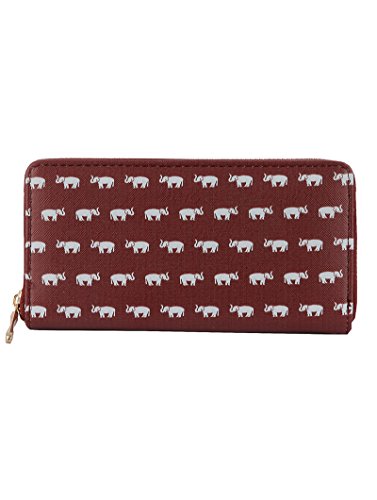 (Variety Gift Shop Fashion Jewelry)/Accessories/Wallets, Money Key Organizers/DIRECT FROM USA/Red Elephants Print Vinyl Clutch Wallet Bag (EKB19163RED)