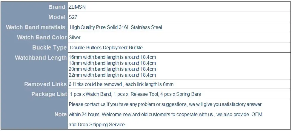 Watchband Materials:High Quality Pure Solid 316L Stainless Steel