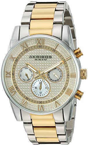 -. Title : Akribos XXIV Men's Swiss Quartz Crystal Pave Dial with Mother-of-Pearl Multi-Function Sub dials on Two-Tone Stainless Steel Bracelet Watch AK939TTG