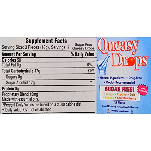 -. Binding : Health and Beauty -. Brand : Three Lollies -. EAN : 8592720380903 -. Feature : Vendor: Three Lollies / Item: Three Lollies Queasy Drops Ginger Papaya Cola Banana Sour Raspberry - 21 Pieces / For: Nausea / Item UPC No: 695342666665 / Gluten Free - Vegan - Kosher -. Label : U-Nutra -. LegalDisclaimer : PLEASE NOTE: Product image is representative of the product offered but may not have the exact attributes. Please read product description for the specific attributes of this product. The information above is intended for reference only. While we attempt to keep our information accurate, we cannot guarantee it is an accurate representation of the latest formulation of the product. If you have any concerns, please visit the vendor's web site. The information above are the views of the product's manufacturer. These statements have not been evaluated by the Food and Drug Administration. This product is not intended to diagnose, treat, cure or prevent any disease. -. Manufacturer : U-Nutra -. MPN : 0314187 -. PartNumber : 0314187 -. ProductGroup : Health and Beauty -. ProductTypeName : HEALTH_PERSONAL_CARE -. Publisher : U-Nutra -. Studio : U-Nutra -. Title : Three Lollies Queasy Drops Ginger Papaya Cola Banana Sour Raspberry - 21 Pieces