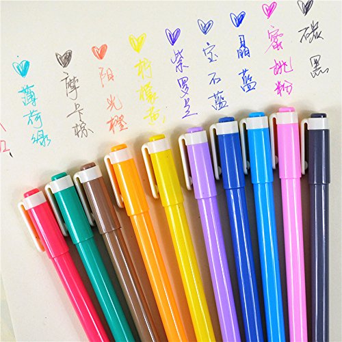 -. Feature : Type:Gel Pens / Writing Point:0.5mm / Feature:Erasable Pens / Color:10 Colors(Ink color is the same as pen color) / Package Included:10 Pcs/Set Pens