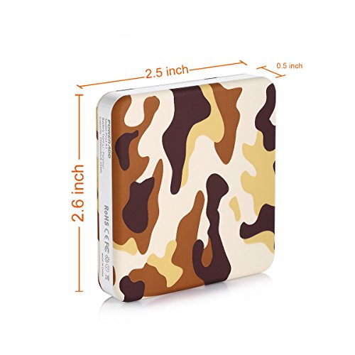 -. Binding : Wireless Phone Accessory -. Brand : Poweradd -. Feature : Vest-pocket: extremely small size of 2.6*2.5*0.5 inch, fits easily into your pocket or bags, quite convenient for outdoors / Comfortable touch: bring a soft and smooth feeling to your hand, with a skin of rubbery oil / Rational capacity: 2500mah is enough to support your smartphone to work for five more hours / Safety guarantee: grade A Li-ion polymer battery cell, provide safe and stable power to your devices / Additional warranty: 24h*7d customer service and 24 months limited product warranty -. Label : Poweradd -. Manufacturer : Poweradd -. PackageQuantity : 1 -. ProductGroup : Wireless -. ProductTypeName : WIRELESS_ACCESSORY -. Publisher : Poweradd -. Studio : Poweradd -. Title : Poweradd Pilot A1 Power Bank, Pocket-sized Portable Charger, 2500mAh External Battery for Smartphones- Camouflage Brown