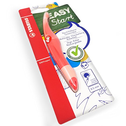 -. Binding : Office Product -. Brand : Stabilo -. Feature : Refillable Handwriting Rollerball Pen - Right Handed - Blue Ink - Stabilo / Ergonomic rollerball pen for children developed with scientists, designed to improve handwriting. / This pen is recommended by teachers and is perfect for children learning to write as it is designed to correct hand posture when writing. / The Easy original pen has special grip zones that ensure a correct hand position, and are available to suit left or right handers. / The curved tail design towards the back of the pen allows the pen to rest on the side of the hand, making writing for long periods of time comfortable. -. Label : Stabilo -. Manufacturer : Stabilo -. MPN : B-49364-10-0 -. PackageQuantity : 1 -. PartNumber : B-49364-10-0 -. ProductGroup : Office Product -. ProductTypeName : WRITING_INSTRUMENT -. Publisher : Stabilo -. Studio : Stabilo -. Title : Stabilo Easy Original Refillable Handwriting Rollerball Pen – Right Handed – 0.5mm – Coral Barrel - Blue Ink