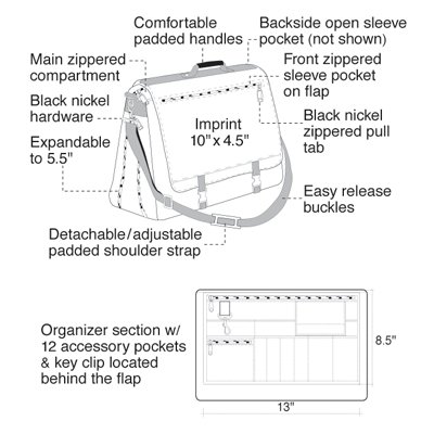 -. Binding : Office Product -. Brand : Yens® -. Feature : One main compartment can expand to 6quot;D. / One zippered & slip pockets for business organizer accessories & key holders beneath one zippered full flap front pocket. / Extra one zippered back pocket / Adjustable & removable shoulder strap with pad & with heavy duty metal hardware. / Size: 16.5'' X 12'' X (3.5'' to 5.5'') -. Label : Yens® -. Manufacturer : Yens® -. Model : 9311 -. MPN : 9311 -. PackageQuantity : 1 -. PartNumber : 9311 -. ProductGroup : Office Product -. ProductTypeName : OFFICE_PRODUCTS -. Publisher : Yens® -. Studio : Yens® -. Title : Yens® Fantasybag Expandable Briefcase, 9311