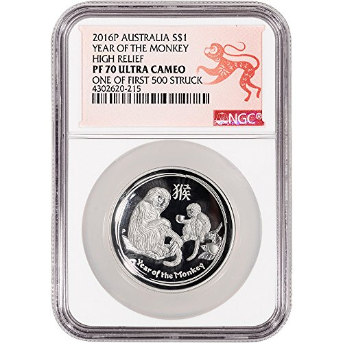 2016 AU Australia Silver (1 oz) Year of the Monkey High Relief One of First 500 Struck - Lunar Label $1 PF70 NGC UCAM