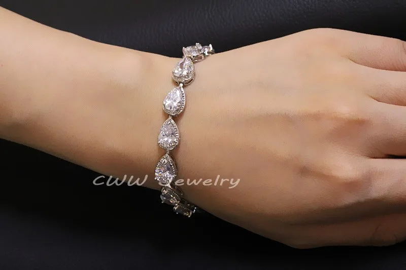 CWWZircons Fashion Woman 2017 Cubic Zirconia Jewelry Stunning Water Drop CZ Stone Bracelet Bridal Wedding Jewelry Gift CB135