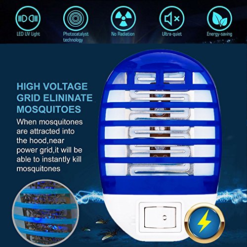 NOISELESS, QUIET TO OPERATE & EASY TO CLEAN: Just plug into socket, the bug zapper night light will work without any noise! You can enjoy your wonderful time without any other disturbance. The indoor mosquito killer is also affixed with a detachable cover, which can be easily removed for cleaning and bug disposal.