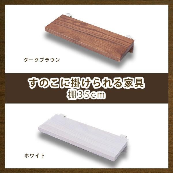 「壁に付けられるすのこ」(別売)に掛けて使用できます。 製造国:中国 素材・材質:天然木桐材(ラッカー塗装) 商品サイズ:(約)W35×D13.5×H6cm(フック部含む) 重量:約0.35kg 仕様:完成品 ※サプライヤー直送品 ご注文後3~4営業日後の出荷となります【商品名】Kake すのこに掛けられる家具 棚35cm ダークブラウン・KT-2(DB)