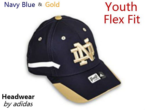 -. Feature : Notre Dame Fighting Irish Youth Size Flex Fit Hat / Quality Raised Embroidered Logo / This 2 Tone Hat Is Navy Blue & Gold / Youth Size Stretch Fit One Size Fits Most / Notre Dame / NCAA Authentic Product