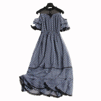 ワンピース ロング丈 パーティードレス オープンショルダー 透け感 シースルー シック 大人 レース お呼ばれ drgz2697