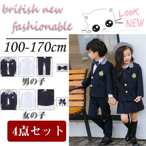 カラー :写真通り セット内容:4点:(女の子:ジャケット、スカート、リボン、シャツ)(男の子:ジャケット、パンツ、蝶ネクタイ、シャツ)サイズ:cm90 参考身長90cm 100 参考身長100cm 110 参考身長110cm 120 参考身長120cm 130 参考身長130cm 140 参考身長140cm 150 参考身長150cm 170 参考身長170cm 170 参考身長170cm 縫製の状態や素材によりまして、若干の誤差がある場合がございます。あらかじめご了承ください。 ※色落ちや色移りすることがございますので、他のものとは分けて洗濯してください。 ※ご注文確認後(振込みの場合はご入金確認後)、 7-12営業日以内(土日祝日除く)以内に発送いたします。