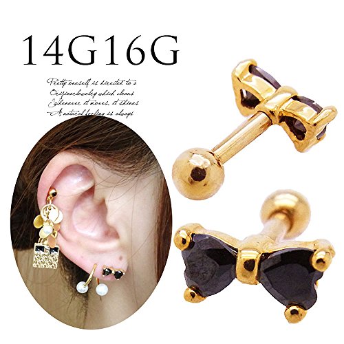 -. Title : (スパイシーリップス) リボン BLACK 軟骨ピアス ボディピアス 0446