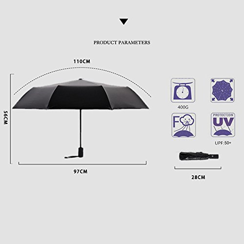-. Binding : Misc. -. Brand : Silkclo -. Feature : 1. AUTOMATIC, COMPACT, AND SUPER LIGHT- Auto open/close function allows for easy one-handed operation. Measures just 11inch long and weighs less than 1lb for easy storage in purses, briefcases, backpacks, lage and more! / 2. Professional Umbrella Design- want the perfect outdoor quality travel umbrella to match a professional business outfit? The Umbrella is the perfect combination of a smart, low profile black design and great features for the professional on the move! / 3. UV (Ultraviolet) sunblock with black vinyl protection layer above to block the sun. Foldable,compact style with umbrella bag / 4. Super Wide Design-want a great automatic folding umbrella with the perfect size for 2 people? The Silkclo Travel Umbrella offers the best size for covering 2 people fully from rain, measuring a generous 38 inches (97 cm) when fully open for the perfect coverage! / 5. Anti-slip rubberized grip reduces hand and wrist fatigue when you need to hold the umbrella for a long time. -. IsAutographed : 0 -. IsMemorabilia : 0 -. ProductGroup : Sports -. ProductTypeName : SPORTING_GOODS -. Title : Silkclo Travel Umbrella, Automatic Open/Close Compact Umbrella Foldable Rain Umbrella Black Vinyl UV Protective Canopy Parasol UPF 50+ Sun Umbrella for Easy Carrying