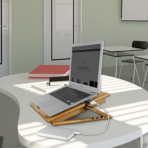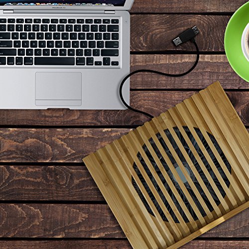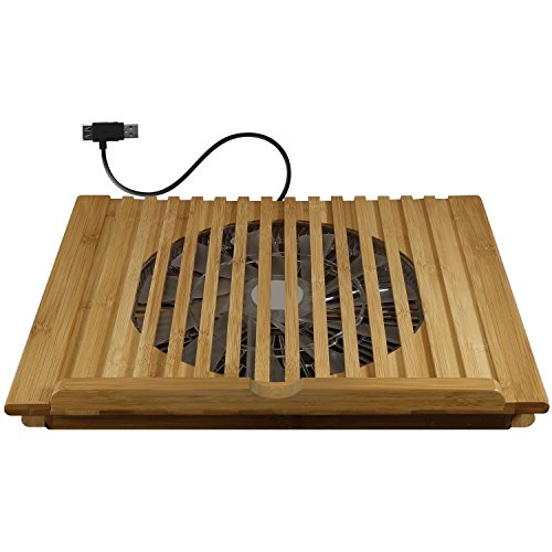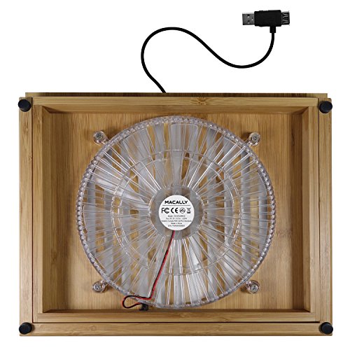 -. Binding : Personal Computers -. Brand : Macally -. EAN : 0701107496061 -. Feature : Beautifully constructed out of eco-friendly bamboo / Cool down your laptop with the quiet extra large USB powered fan / Choose between five adjustable height choices / Features a pass through USB port that allows you to use the USB port connected to the stand / Designed for laptops up to 17" with a USB-A port -. Label : Mace Group Inc / Macally Peripherals -. Manufacturer : Mace Group Inc / Macally Peripherals -. Model : ECOFANPRO2 -. MPN : ECOFANPRO2 -. PackageQuantity : 1 -. PartNumber : ECOFANPRO2 -. ProductGroup : Personal Computer -. ProductTypeName : COMPUTER_INPUT_DEVICE -. Publisher : Mace Group Inc / Macally Peripherals -. ReleaseDate : 2016-06-15 -. Studio : Mace Group Inc / Macally Peripherals -. Title : Macally Wooden Bamboo Laptop Cooling Fan Table Stand for Laptops & MacBook's up to 17" (ECOFANPRO2) -. UPC : 701107496061 -. Warranty : 1 Year