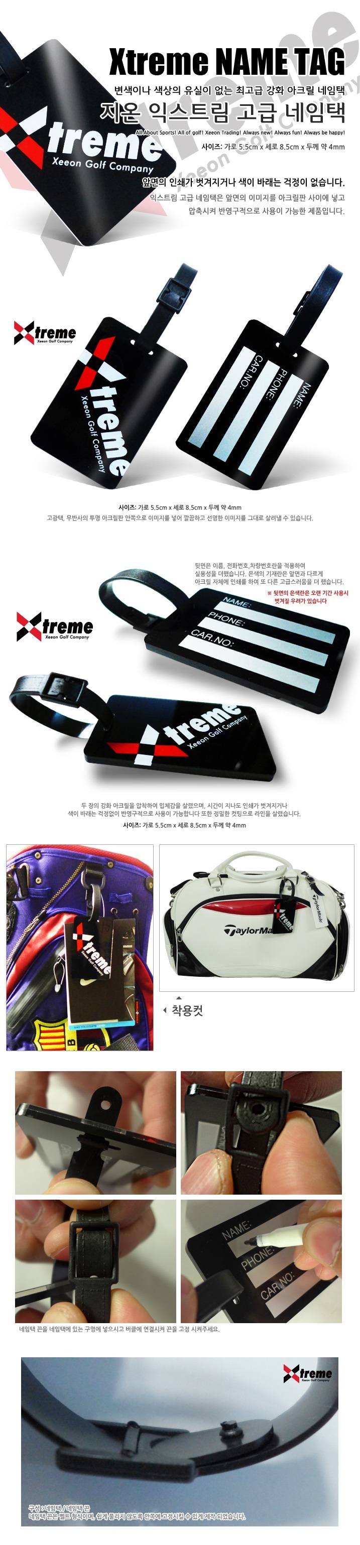 <상품명 : xe익스트림 강화 아크릴 네임택 골프네임텍>