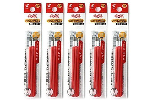 -. Feature : Pilot Frixion Ball Slim Gel Ink Pen Refill-0.38mm / 0.38mm-red-pack of 3 x 5 Set