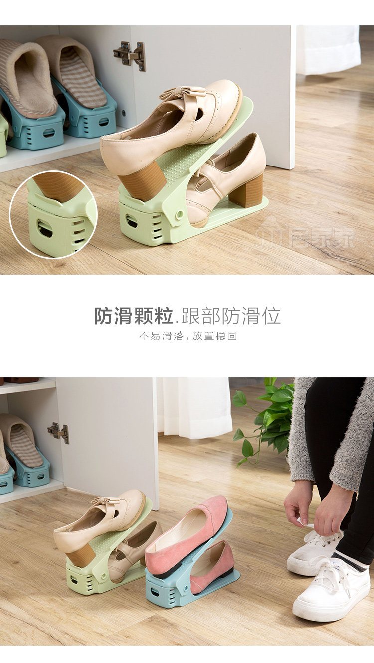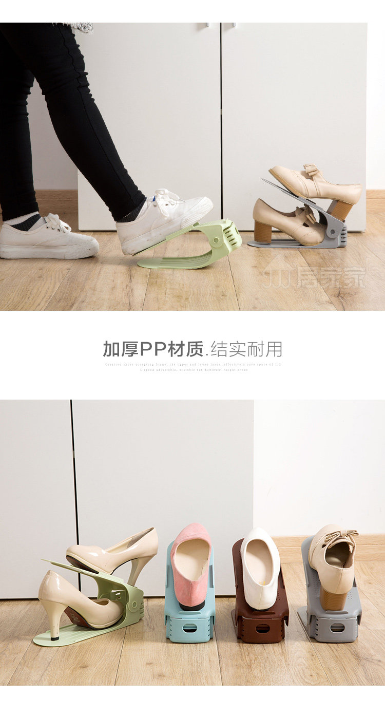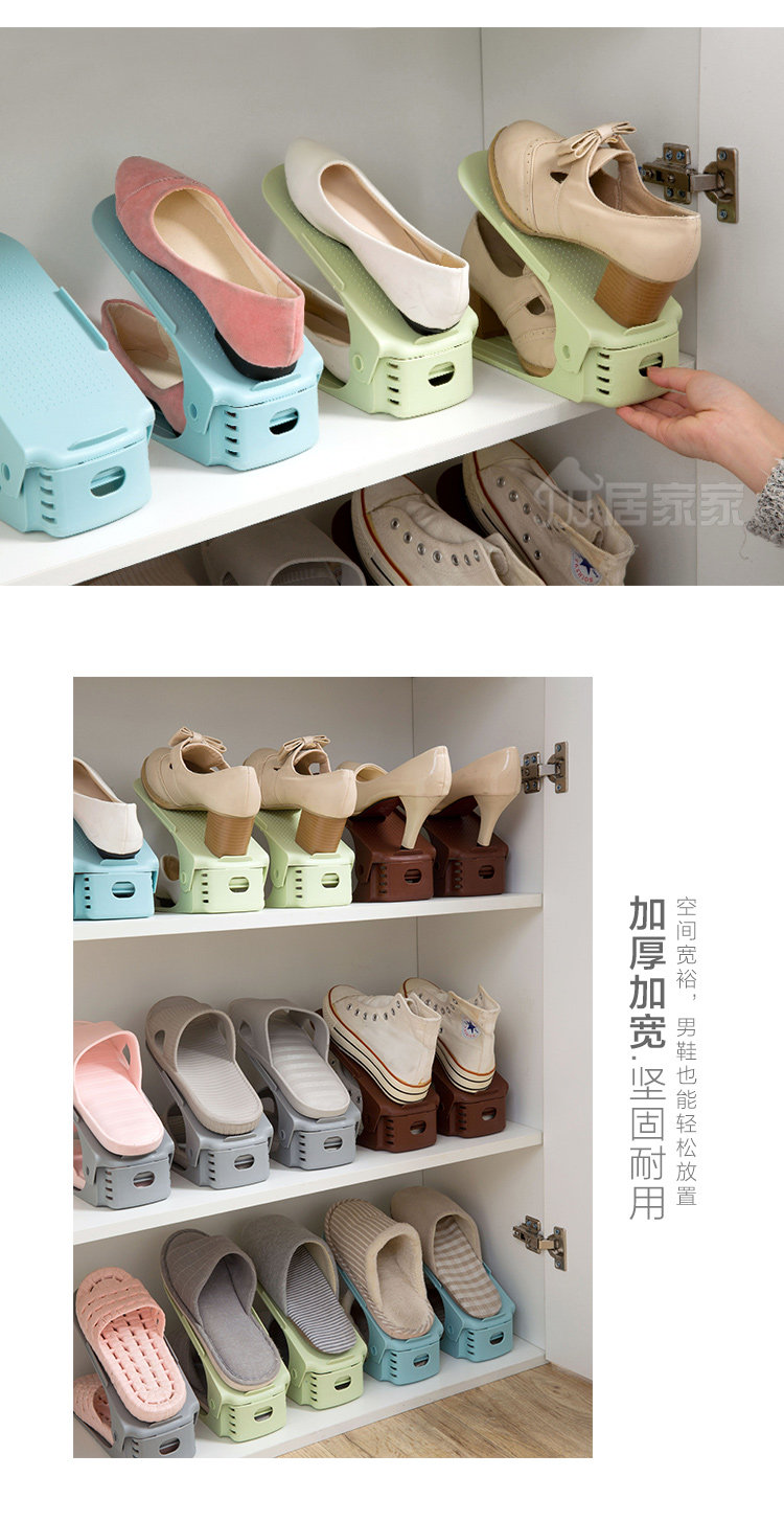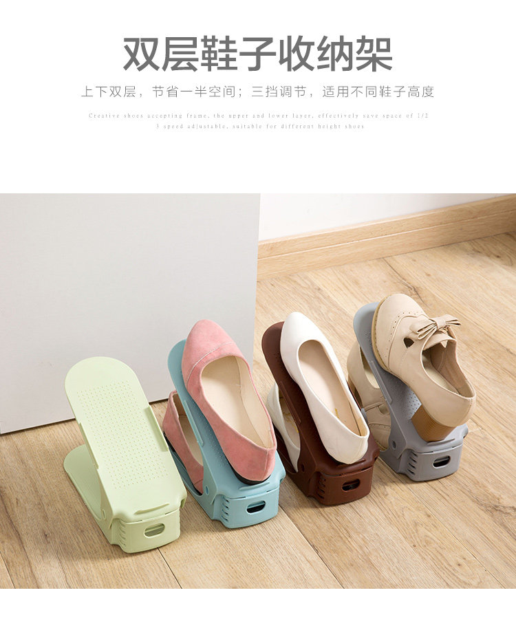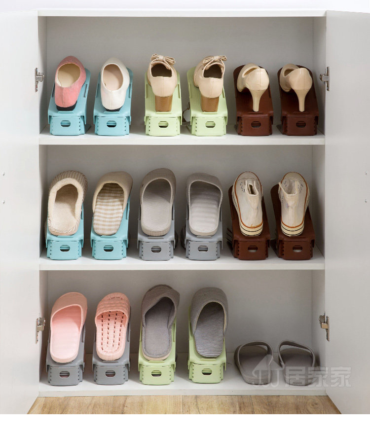 Summary: Creative shoes storage rack, double top and bottom, effectively save space for 1/2; 3 block adjustable, suitable for different shoes height; widened thickened PP material, durable, men's shoes can be placed; Shoe cabinet storage , Drying shoes can be, wind is not easy to fall.