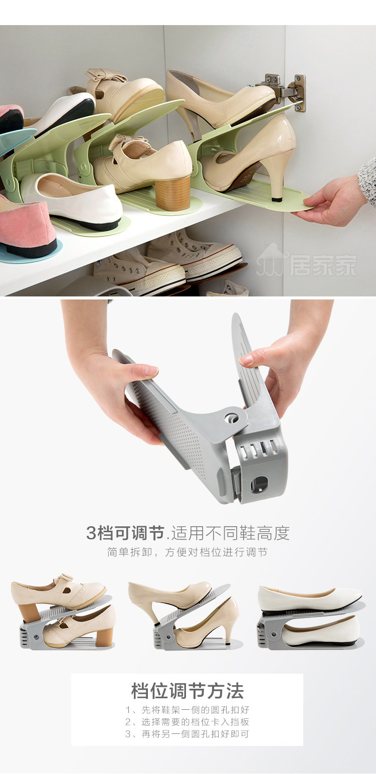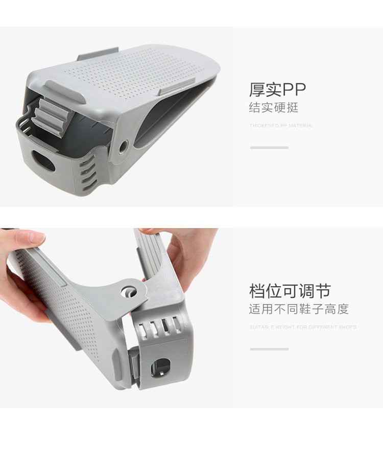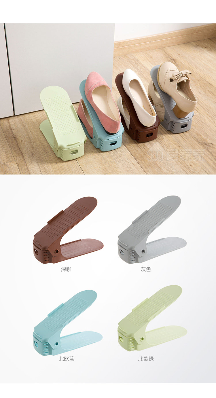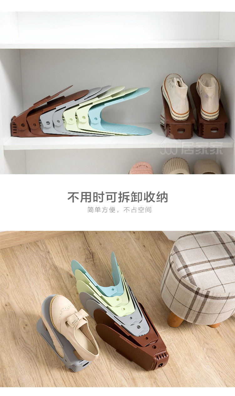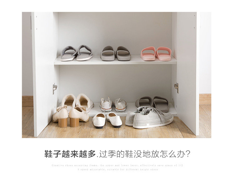 Summary: Creative shoes storage rack, double top and bottom, effectively save space for 1/2; 3 block adjustable, suitable for different shoes height; widened thickened PP material, durable, men's shoes can be placed; Shoe cabinet storage , Drying shoes can be, wind is not easy to fall.