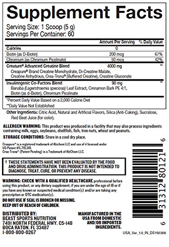 FUELS MUSCLE GROWTH: The professional-strength creatine complex that makes up Beast Creature provides the fuel your muscles need to stimulate growth.
