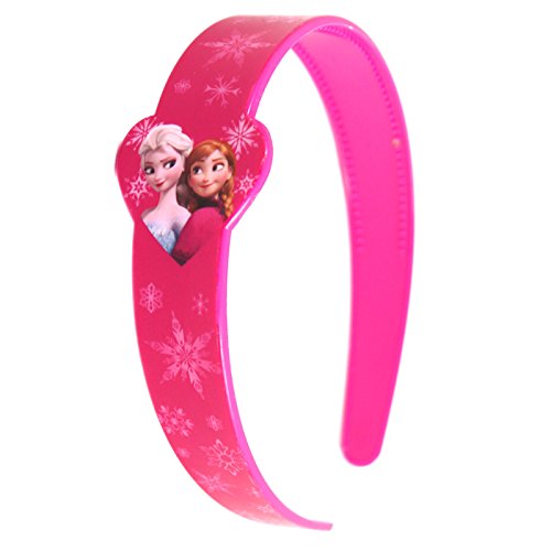 The Disney Frozen headband is bright pink with snowflakes all over. It has a heart on the side that features Princess Anna and Elsa for children who adore the characters. The headband also has small ridges on the inside to hold the hair piece in place on your child's head.