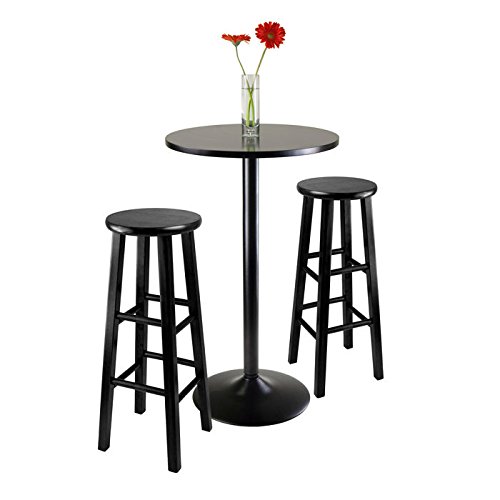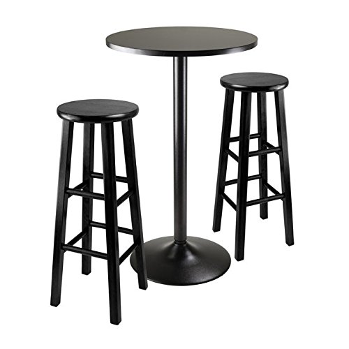 -. Feature : Sleek and stylish black counter height table / 2, 29" Black barstools with square legs / 3-Piece set, easy to assemble