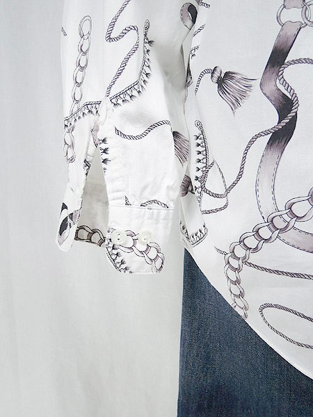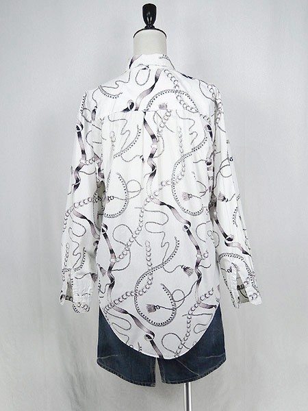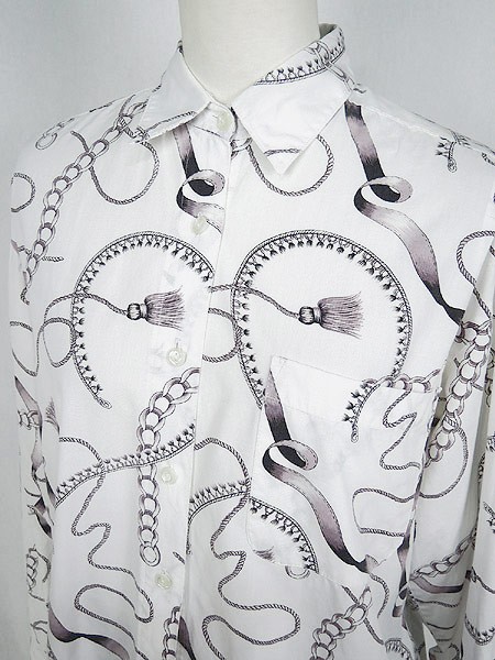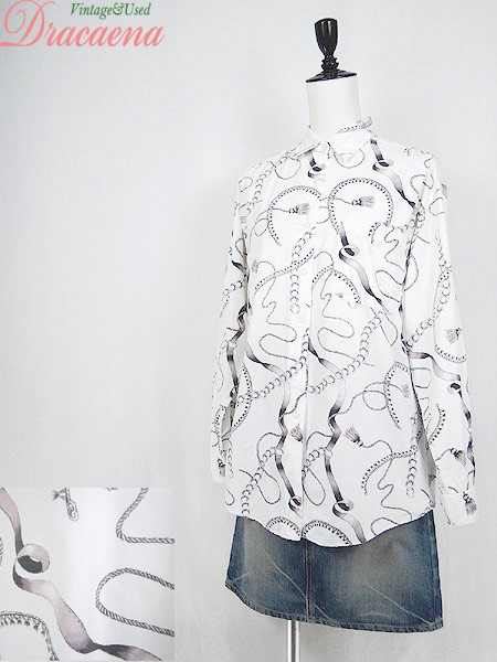 Ladies ブランド- カラー白ベース メール便不可 コンディション★★★ 素材コットン 表記サイズ記載なし スタッフコメント首周りにスレあり。左裾上に小穴あり。前立て、一番下ボタン下にヨゴレあり。 実寸サイズ 着丈 71 cm 身幅 52 cm 肩幅 45 cm 袖丈 53 cm ※ウエスト・ヒップ以外は平置き採寸