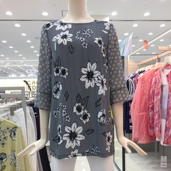 잔잔한 플라워 프린트를 믹스 매치하여 한층 더 멋스럽게 연출 가능한 아이템.