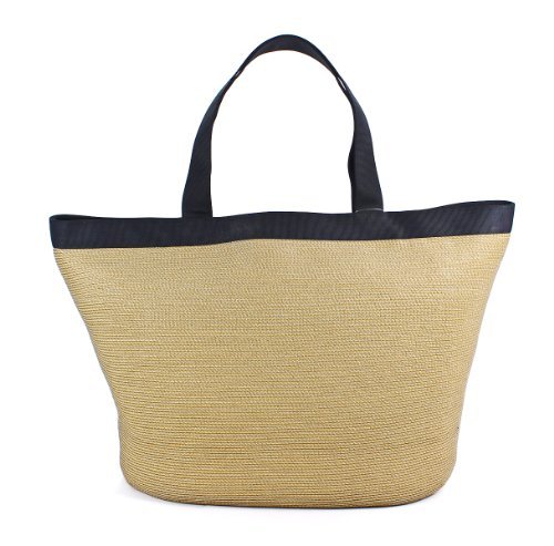 -. Title : Eric Javits Woven Dunemere Fabric Natural Black Beach Tote Bag
