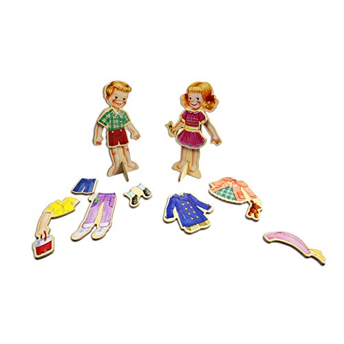 - Feature : Set comes complete with 2 magnetic dolls and 38 mix and match clothing pieces / Great for boys and girls to play / Packaged in a keepsake wooden box with sliding plexiglass lid / Recommended for ages 3 years and above