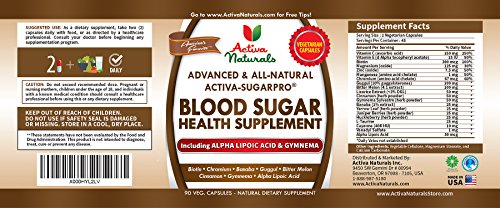 -. Binding : Health and Beauty -. Brand : Activa Naturals -. EAN : 0820103613798 -. Feature : Why Buy Our Blood Sugar Supplement: A premium herbal supplement blended with Bitter Melon, Gymnema Sylvestre, Magnesium, Alpha Lipoic Acid & Gul formulated to provide right nutrients to support Pancreas health naturally / Feel the Activa Naturals Difference: Read the product reviews to see how customers are benefitting by taking our Blood Sugar Health Supplement to support their pancreas function / Key Product Benefits: Provide necessary nutritional support to help maintain health of Pancreas Function through targeted natural & herbal vitamins, minerals and nutrients / Key Product Features: Veggie Caps, No chemicals, no fillers, no additives, manufactured in the USA, more value for money pricing with 100% peace of mind for the ingredients' purity / Outstanding Customer Support: Buy any of our products confidently as our commitment is to work with you until we find the right solution. You come first to us! -. IsAdultProduct : 0 -. Label : Activa Naturals Inc. -. LegalDisclaimer : *These statements have not been evaluated by the Food and Drug Administration. These products are not intended to diagnose, treat, cure or prevent any disease. -. Manufacturer : Activa Naturals Inc. -. MPN : blood sugar support supplement -. NumberOfItems : 1 -. PackageQuantity : 1 -. PartNumber : blood sugar support supplement -. ProductGroup : Health and Beauty -. ProductTypeName : HEALTH_PERSONAL_CARE -. PublicationDate : 2015-07-23 -. Publisher : Activa Naturals Inc. -. ReleaseDate : 2015-07-20 -. Studio : Activa Naturals Inc. -. Title : Activa Naturals Blood Sugar Health Supplement with Bitter Melon, Gymnema Sylvestre, Magnesium & Gul Herbs - 90 Veg. Caps -. UPC : 820103613798