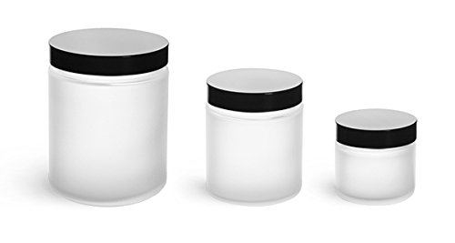 1 Oz Clear Frosted Straight Sided Glass Jar with Black Lid - Pack of 12
