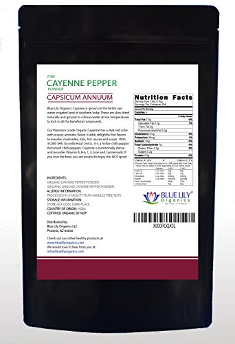 Cayenne pepper is the brilliant red, spicy-hot fruit of the Capsicum annuum plant. Cayenne peppers thrive in many different regions, from tropical to temperate, and are perhaps best-known for as the spicy component of many delicious cuisines worldwide. Blue Lily Organics Cayenne Pepper is grown in the fertile rain water irrigated region in Southern India. These are slow dried naturally and ground to a fine powder, and packed at the source to lock in all the beneficial compounds. Cayenne powder is both warming and stimulating to the body. Numerous studies show that cayenne powder supports a healthy metabolism. It may also promote healthy digestion by soothing mucous membranes and promoting the flow of secretions in the digestive tract. The warming and invigorating properties of cayenne powder also work to support the body's natural detoxification systems.Feature