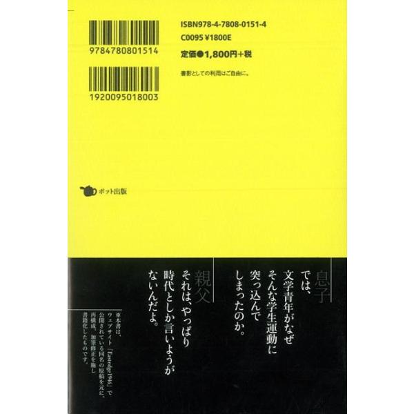 【商品説明】 定価(税込み):1,944円 値引き:10% OFF 「おやじ死ぬんだろう、だったら、その前にしゃべっておけ」(息子)末期の肺がんであることが発覚した親父に、息子がとことんインタビュー。1960年代後半、元東大全共闘・駒場共闘会議のリーダーであった親父が息子に語る、全共闘という時代。 バーゲンブック 新品 特価 格安 文芸 ノン フィクション ドキュメンタリー 時代 | |