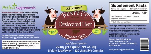 - Title : Perfect Desiccated Liver - Grass Fed Undefatted Argentine Beef Liver (120 capsules, 750mg per capsule, Net wt 90g)