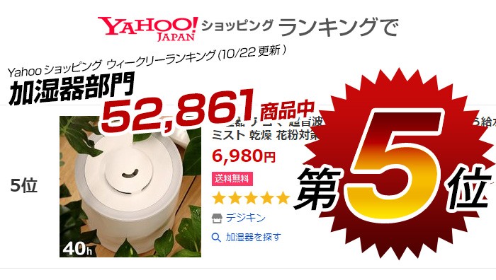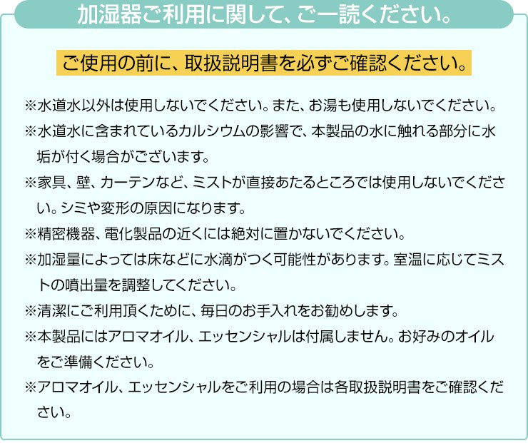・これ1台で最大8畳の部屋を一気に加湿でき、部屋の隅々まで潤います。・お部屋の広さに合わせて加湿量を3段階から選べます!・ミスト吹き出し口は360度回転するから、置き場所を選ばず様々な方向に加湿できます!・加湿中も給水できるから、給水のたび電源を切る必要がありません。お好きなアロマオイルやアロマウォーターをそのまま使える!上から注げる上部給水式の超音波加湿器。タンクの水にアロマオイル、アロマウォーターをそのまま垂らして使えるPP素材の超音波加湿器。上部から水を注ぐだけで簡単に給水できる上部給水式&外して洗える給水タンクで、お手入れラクラクです!サ イ ズ : 195φ・270H重 量:1kg素 材 : PPタンク容量:4L電 源 : DC24V 1A(コード長 約1.8m)噴霧方法:超音波振動方式適用畳数:(約)木造和室5畳/プレハブ洋室8畳噴霧量:最大300ml/h ±30ml連続使用時間:(約)13時間オフタイマー:2・4・6時間消費電力 : 24Wデジキン