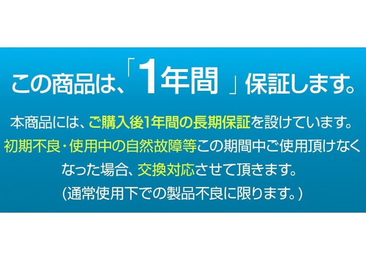 | 保証期間 | お買い上げ日より1年間 |