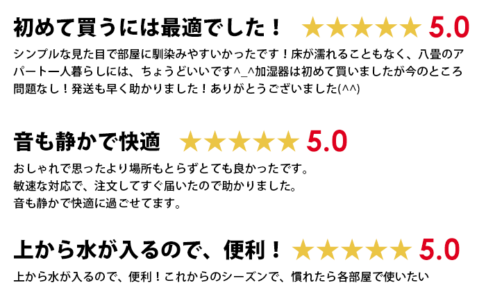 | 連続加湿時間 | Low:40時間 、Middle:20時間、High:13時間 |