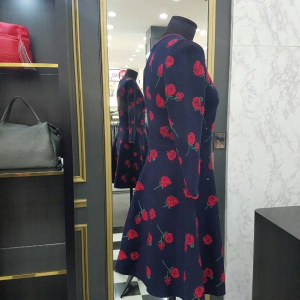 장미 프린트가 멋스러운 편한 니트 소재의 원피스입니다.