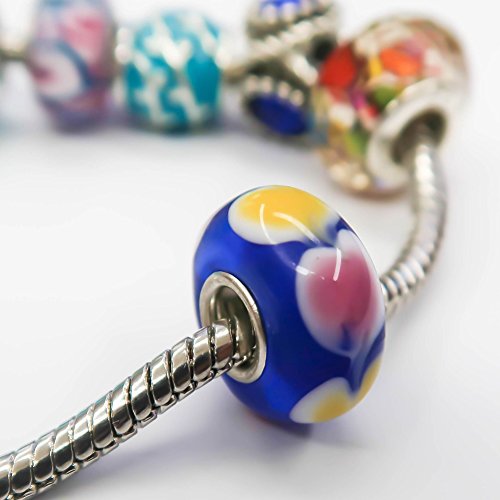 TOAOB 50 Piece Assorted Lampwork Murano Glass Bead Rhinestone Metal European Beads Fit Snake Style Charm Bracelet