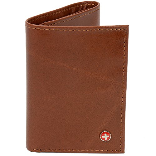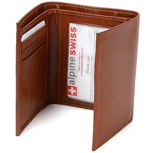 Alpine Swiss Men's Genuine Leather Trifold Wallet Brown