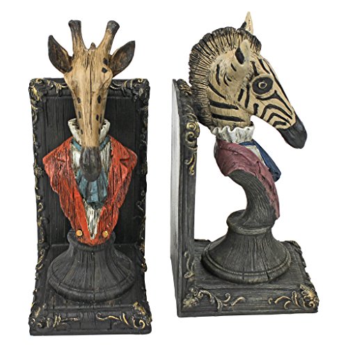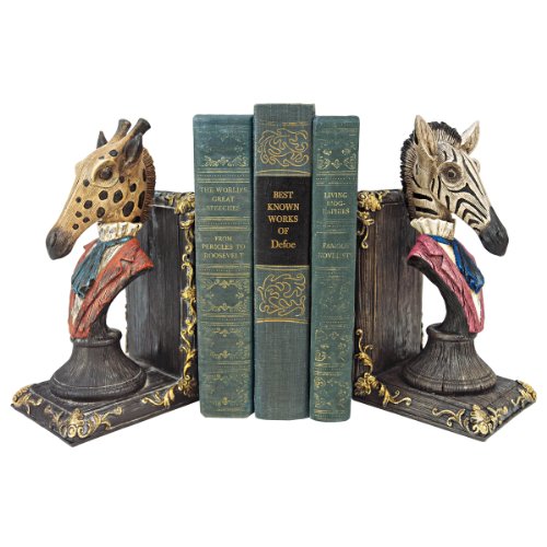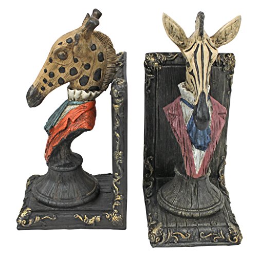 Design Toscano Serengeti Soiree Giraffe and Zebra Bookends, Full Color