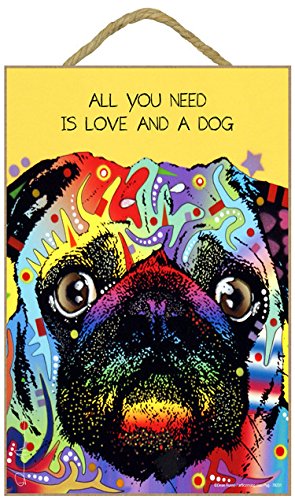 (SJT78231) Pug - All you need is love and a dog 7" x 10.5" wood plaque/sign featuring the artwork of Dean Russo