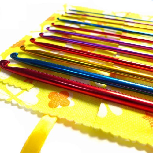 Pouch of 12-Pack 2mm - 9mm Aluminium Afghan Crochet Hook Kit for Beginners