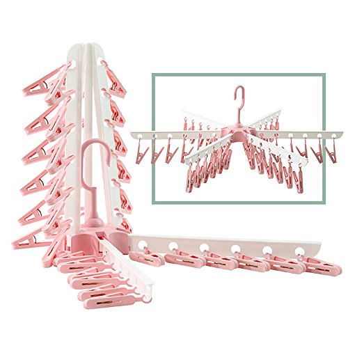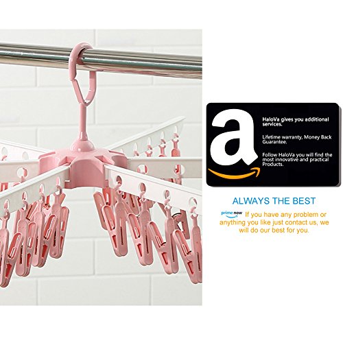 HaloVa Laundry Drying Rack, Windproof Hanging Foldable Portable Outdoor Indoor Clothesline with 36 Clips for Clothes Underwears Socks, Red