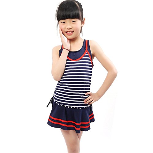 Vkenis Striped Two-Piece Suits Navy Style Swimsuit for Girls 8-14 Years Old