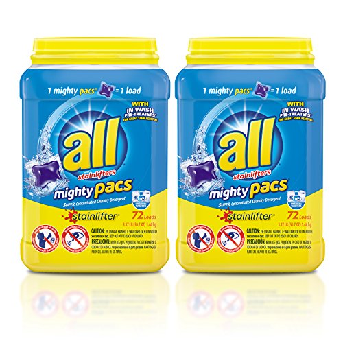 all Mighty Pacs Laundry Detergent, Stainlifter, 72 Count, 2 Tubs, 144 Total Loads
